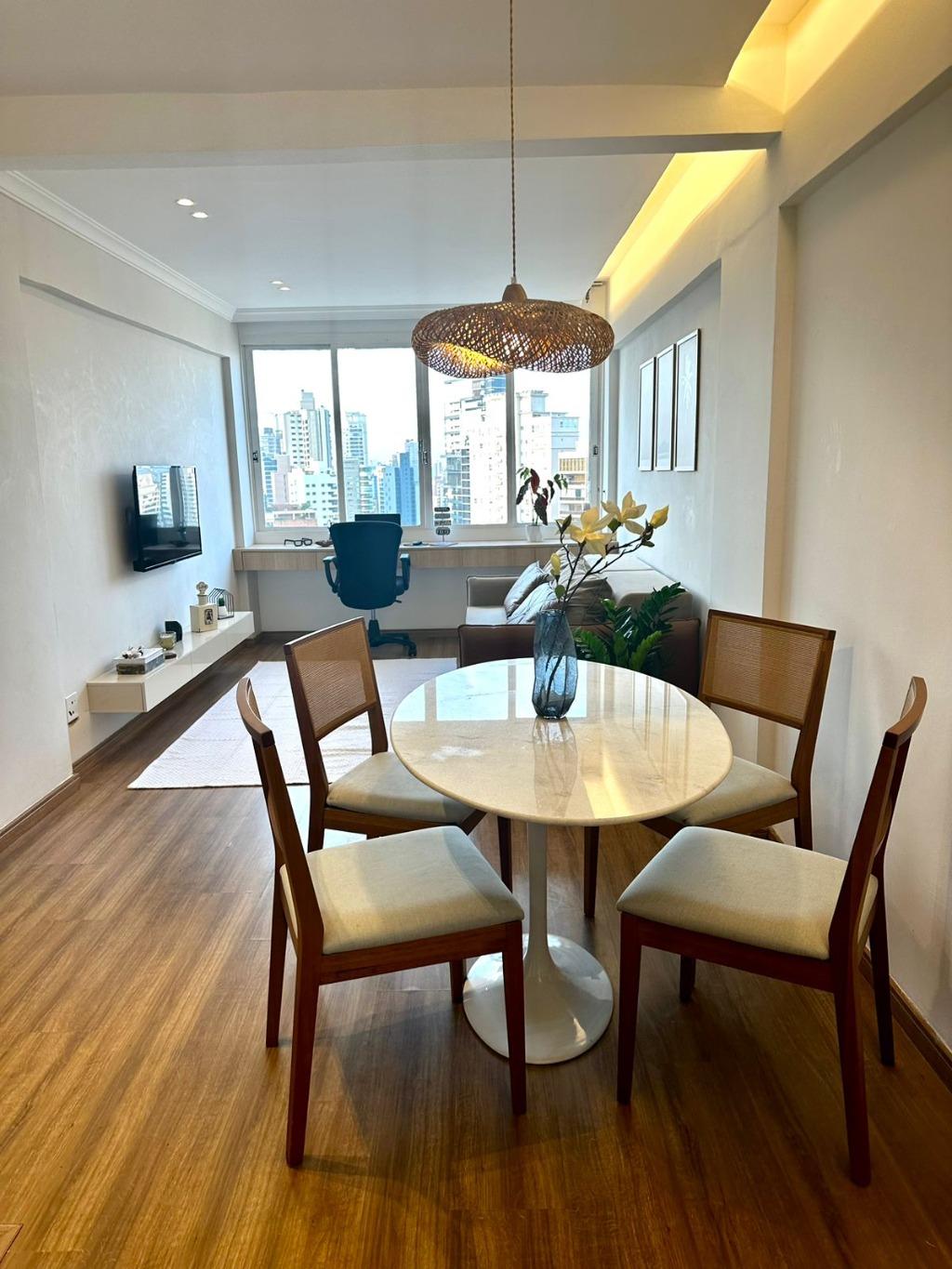 Apartamento mobiliado para venda no Cambuí, Campinas – Cuidadosamente reformado, com estilo contemporâneo e decoração refinada! Com móveis selecionados a dedo e uma confortável planta de 51 m², este apartamento será sua paixão à primeira visita e o seu melhor investimento. Logo na entrada, uma agradável sala com espaço para home office, acompanhada de grandes janelas e uma vista encantadora do alto do andar. Integrada a este ambiente, está uma cozinha equipada com modernos armários planejados, forno, cooktop, geladeira e máquina de lavar na área de serviço. Possui também 1 quarto com armários e um charmoso banheiro. E para deixar este imóvel ainda mais interessante, uma localização incrível, próximo aos melhores comércios, restaurantes e avenidas de Campinas, como IGA Escola de Gastronomia e Confeitaria, Catedral do Chopp e pizzaria Ritorno.